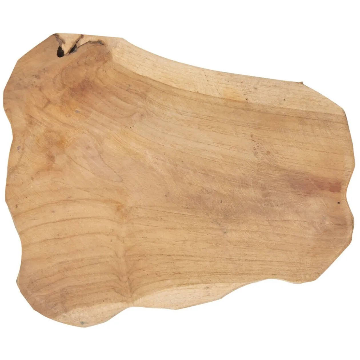 Plateau en teck marron à bord brut, idéal pour créer une décoration de table de style chaleureux et rustique.