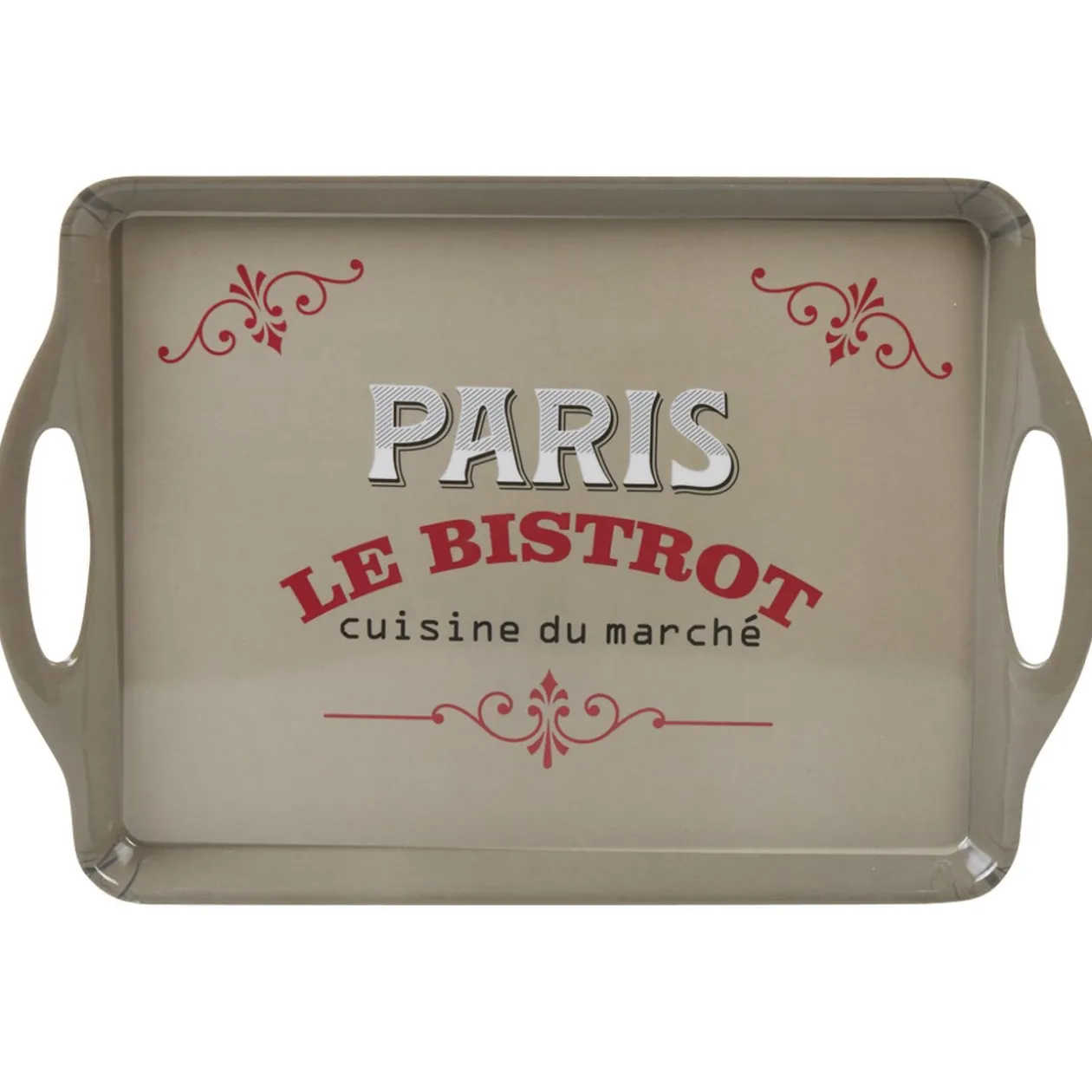 Plateau rectangulaire avec poignées « Paris le bistrot », dim. 50,5×34,5×3,3 cm, plastique melaminé.