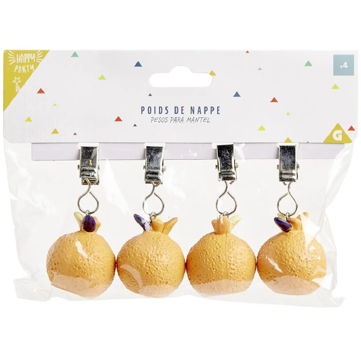 Avec ce lot de 4 poids fantaisies à suspendre, votre nappe restera bien en place sans risque de s’envoler.