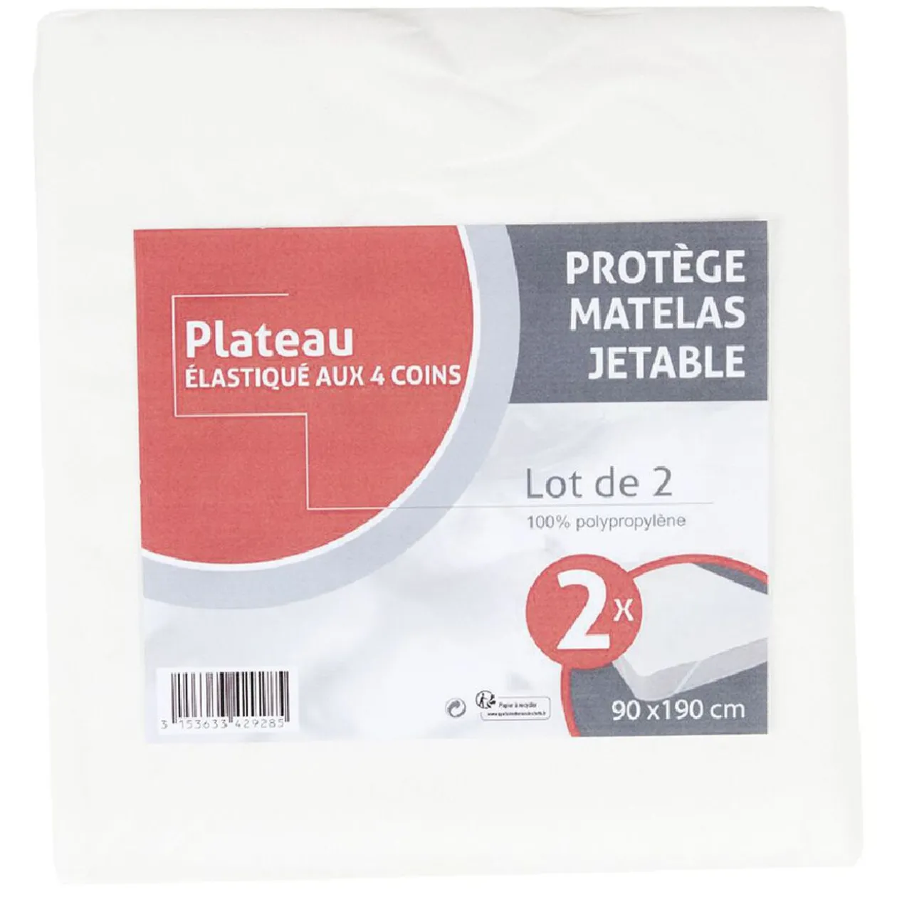 Lot de 2 protèges matelas jetables blancs pour un lit 1 personne.