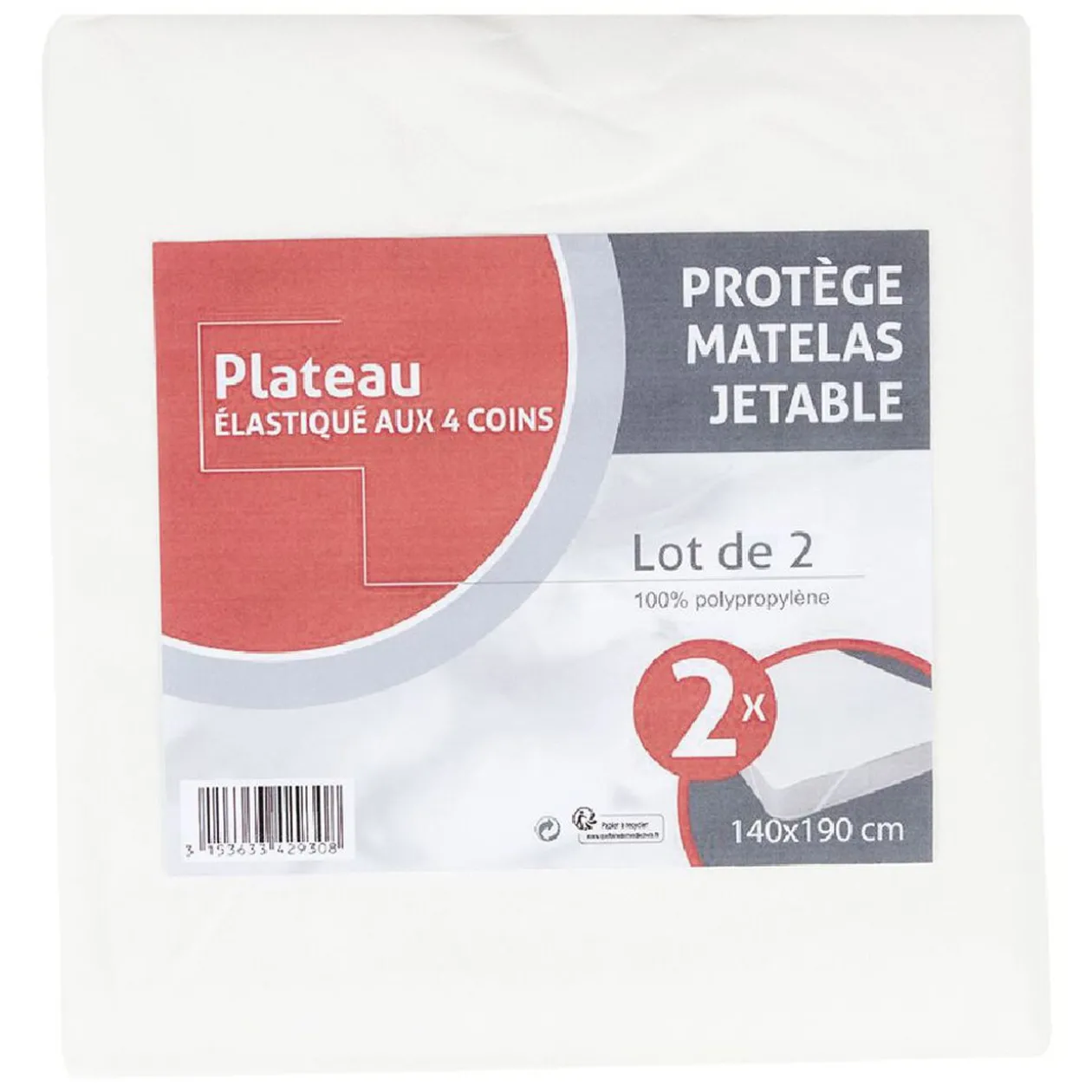 Protègez vos matelas avec ces deux protections jetables blanches pour un lit 2 personnes.