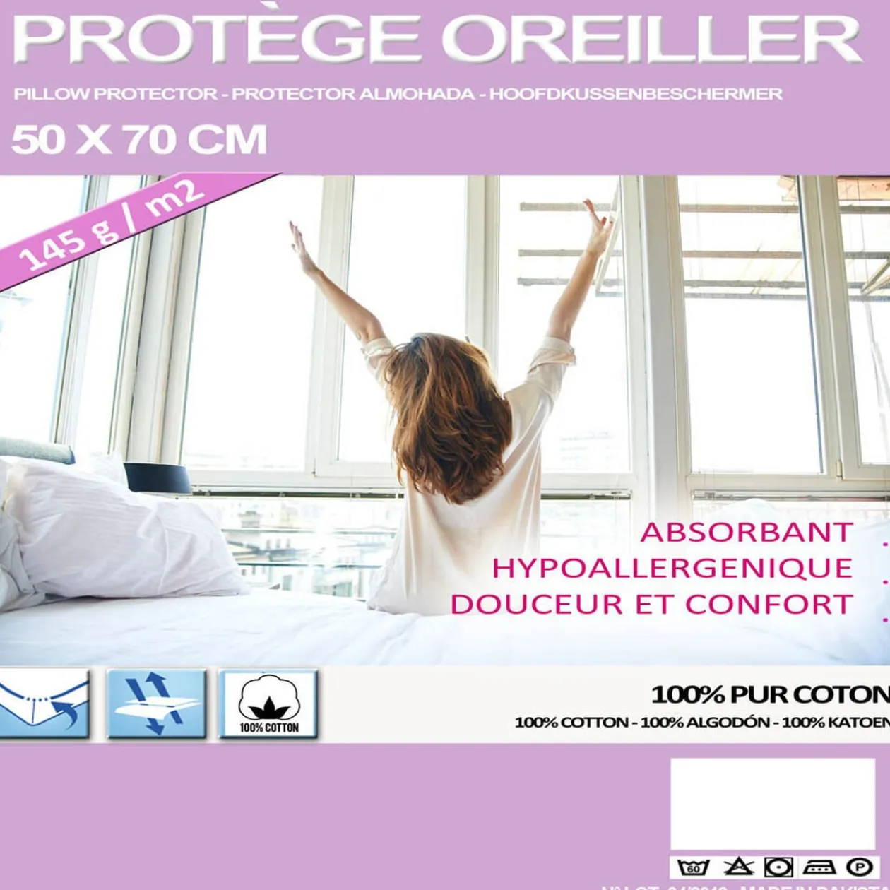 Protège oreiller rectangulaire en coton molletonné absorbant et indispensable pour prolonger la durée de vie de vos oreillers.