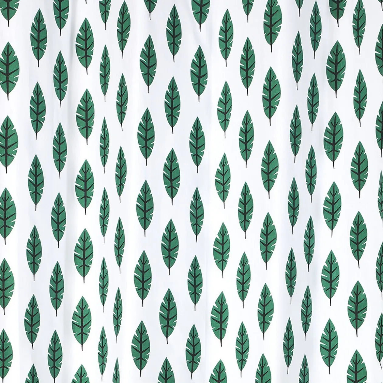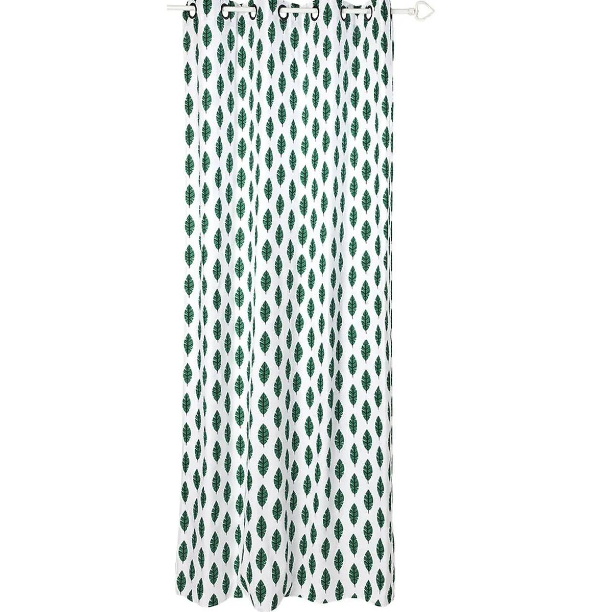 Rideau blanc avec motif imprimé végétal de couleur verte.