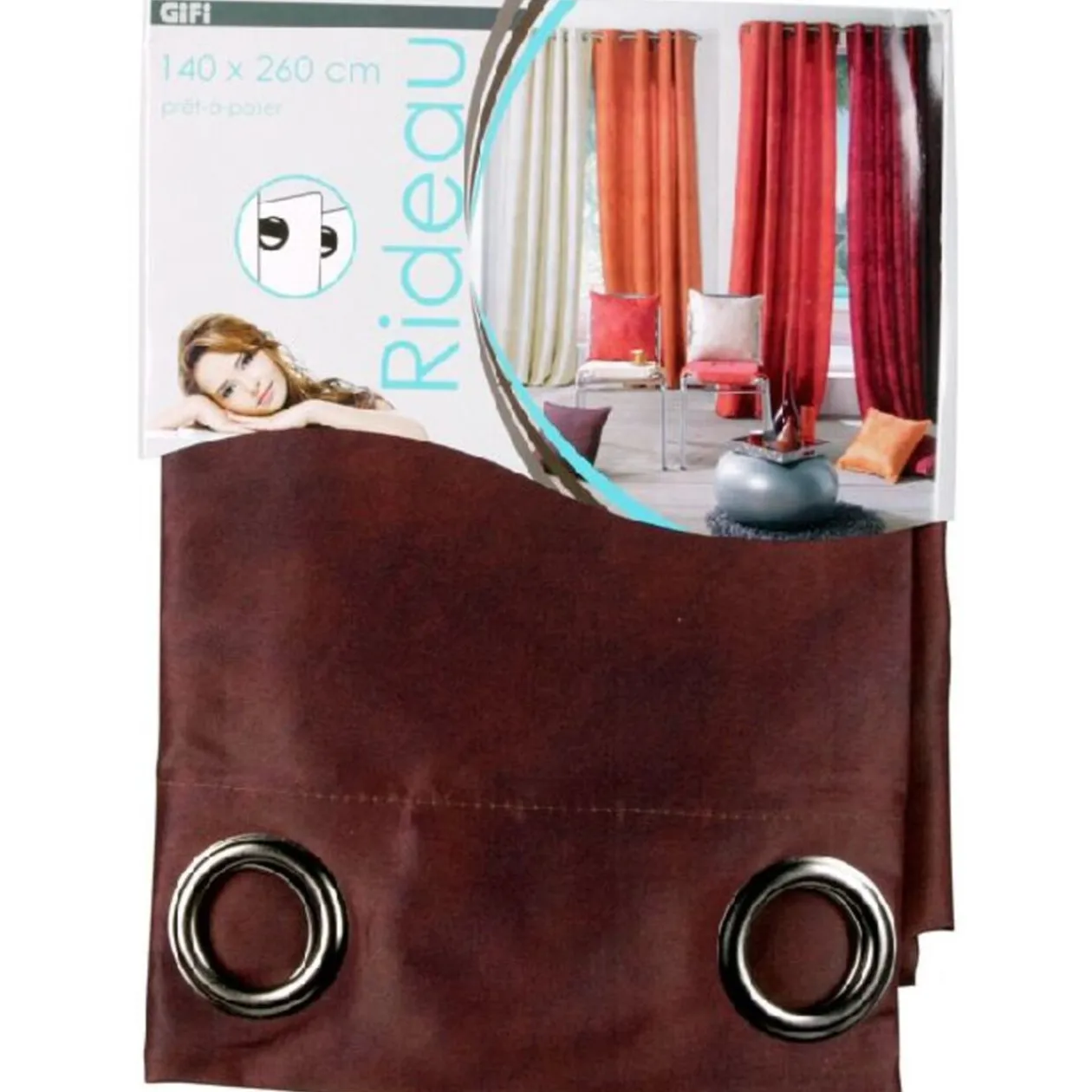 Rideau à oeillets, dim. 140×260 cm, 100% polyester, couleur chocolat.