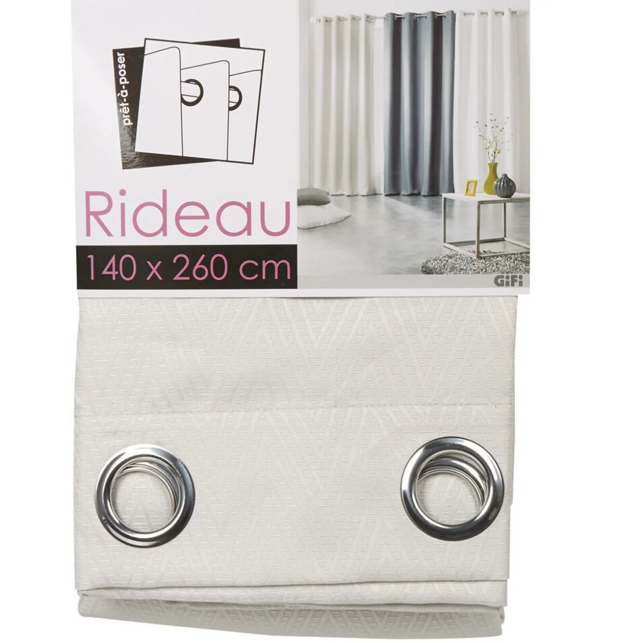 Rideau à oeillets jacquard chevron gris