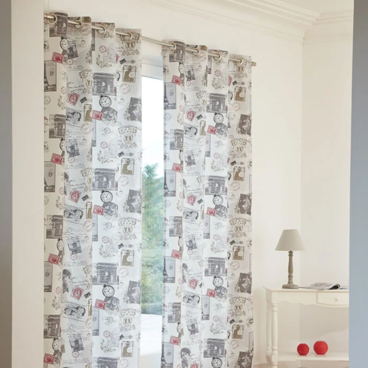 Rideau à oeillets motif « Paris », dim. 140×260 cm, 65 % coton, 35 % polyester.