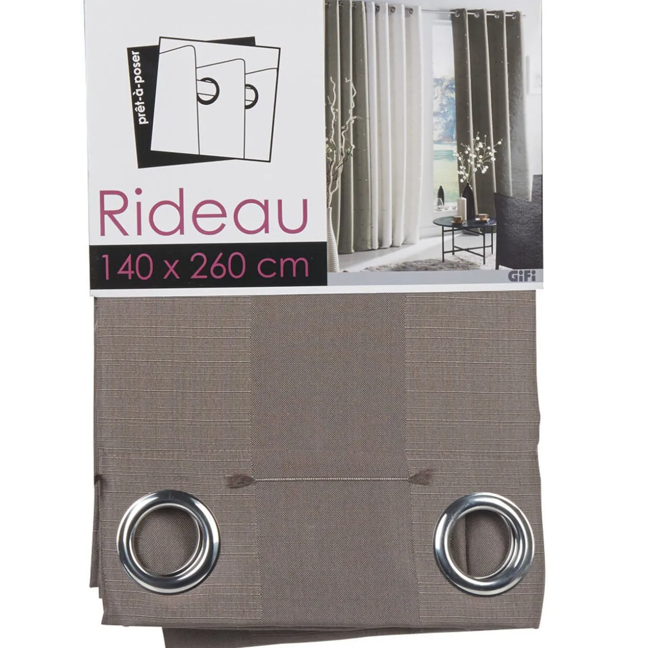 Rideau à oeillets taupe à plumetis, dim. 140×260 cm, polyester.