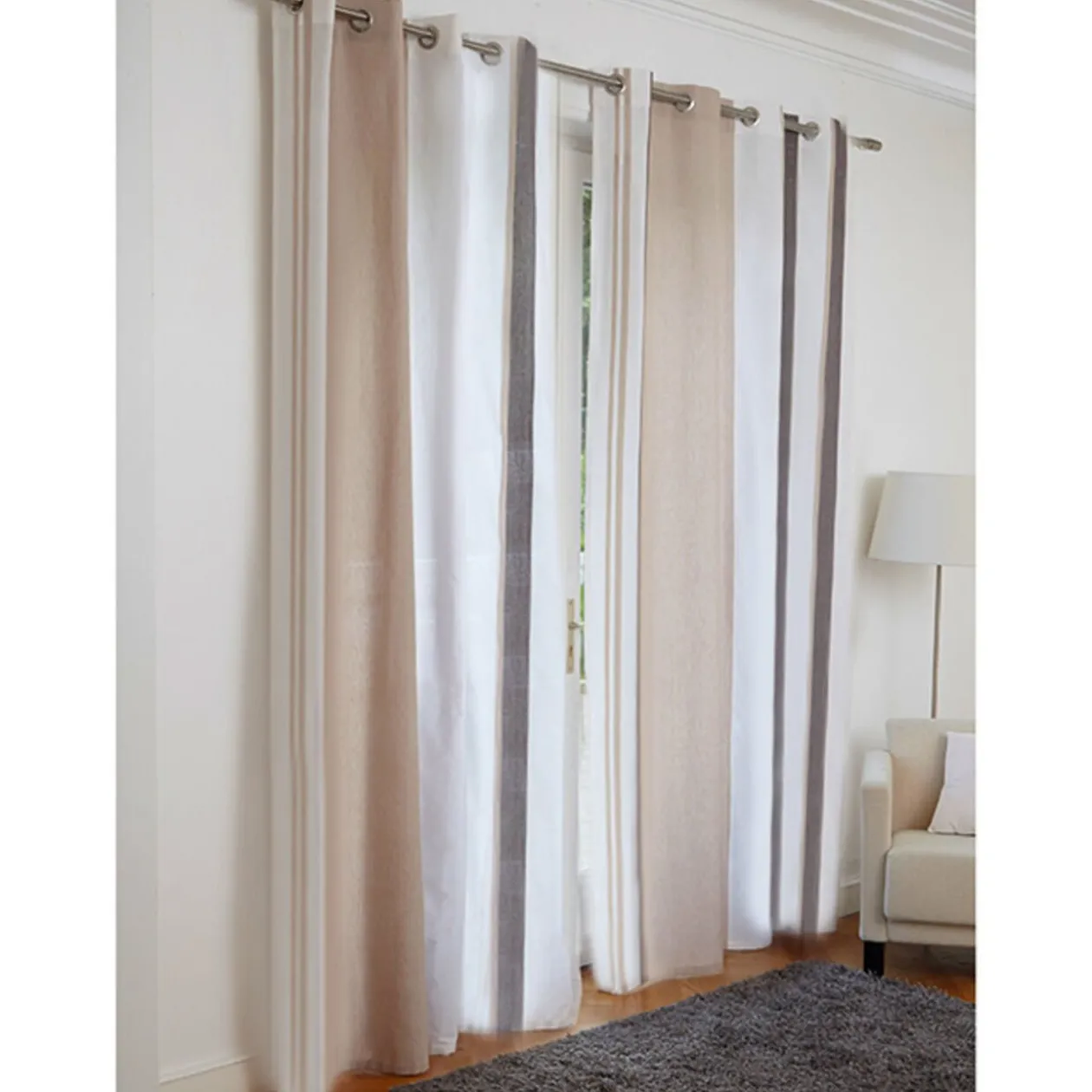 Rideau à oeillets rayé beige / blanc / gris, dim. 140×260 cm, coton.