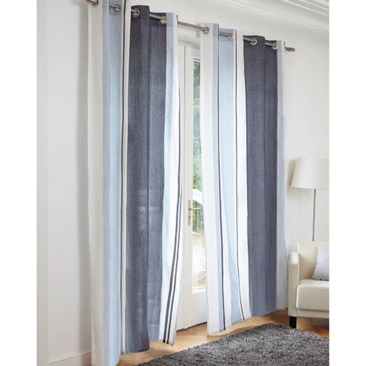 Rideau à oeillets rayé bleu / blanc, dim. 140×260 cm, coton.