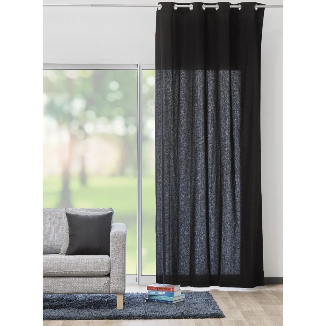 Rideau à oeillets de couleur noir uni, idéal pour une décoration d’intérieure simple et raffinée.