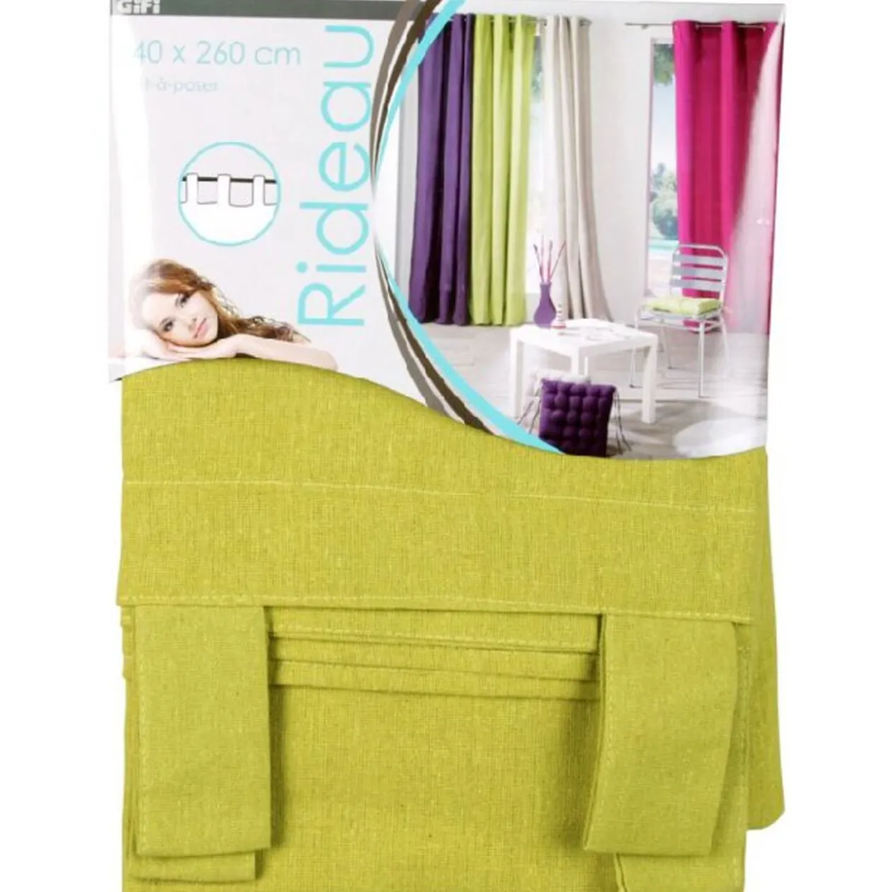 Rideau à patte de couleur vert, dim 140 x 260 cm. 45% polyester, 45% coton.