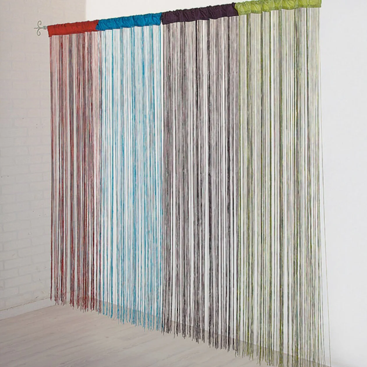 Rideau de fils uni bleu turquoise