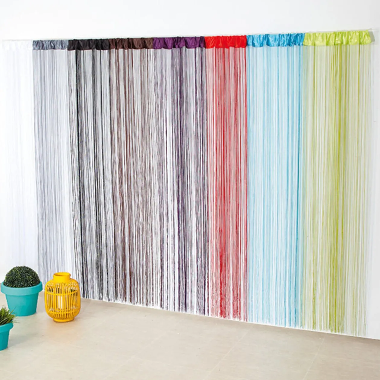 Rideau de fils bleu, dim. 185×85 cm, polyester.