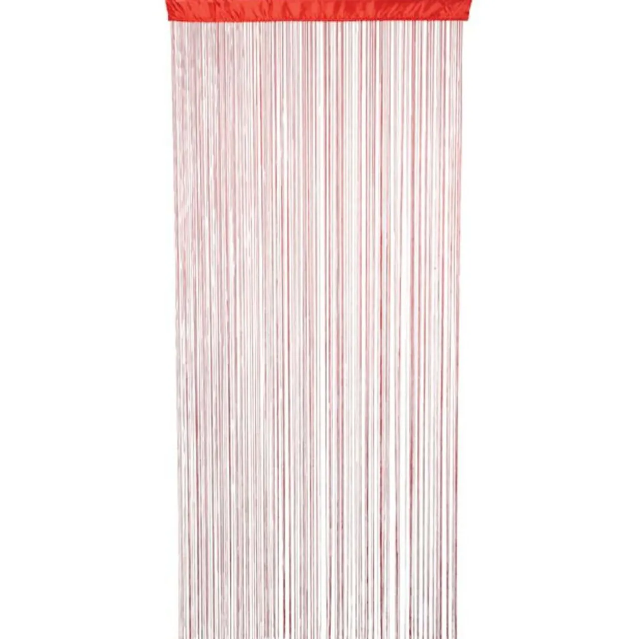 Rideau de fils, couleur rouge, dim. 85×185 cm, 100 % polyester.