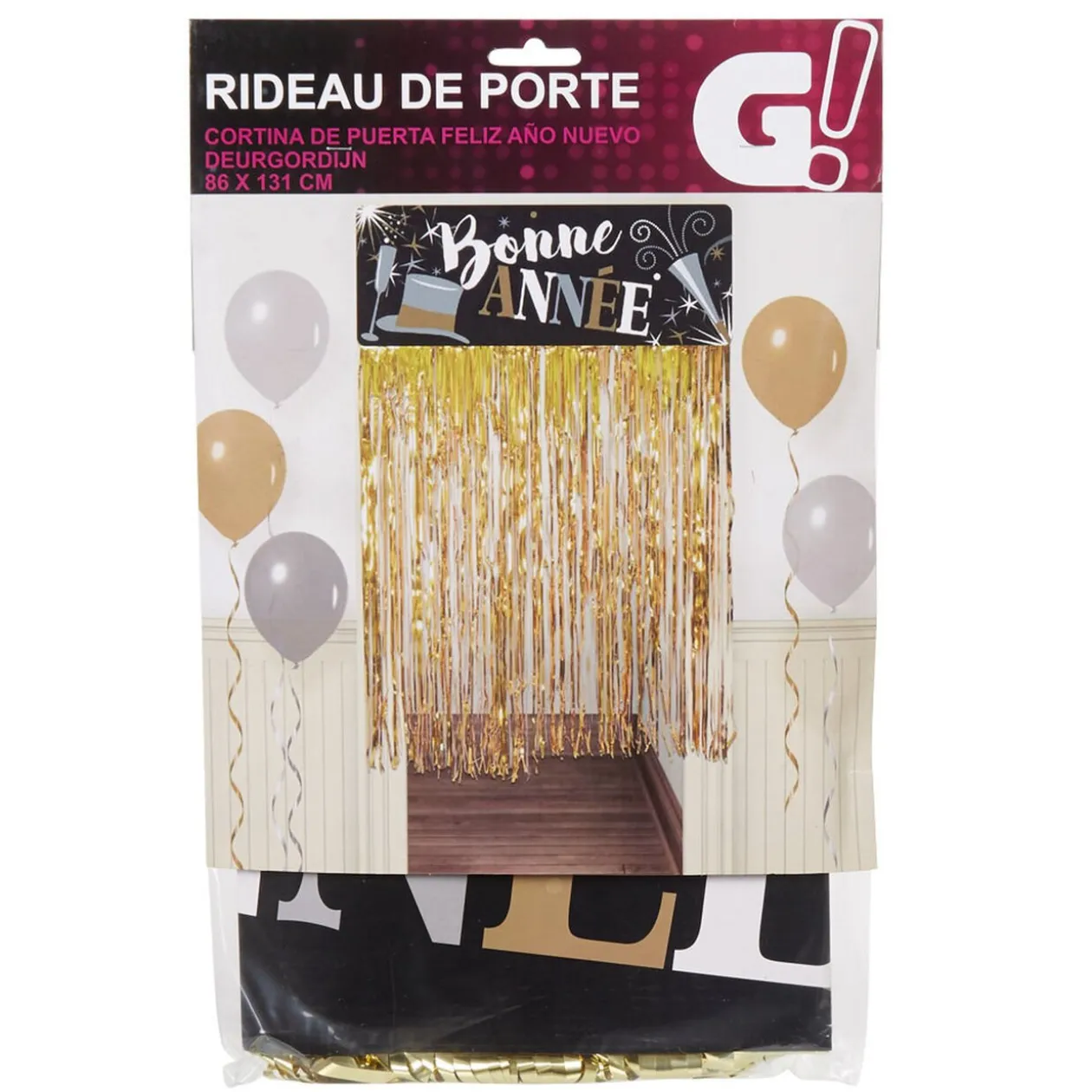 Rideau de porte Bonne Année lanières dorées
