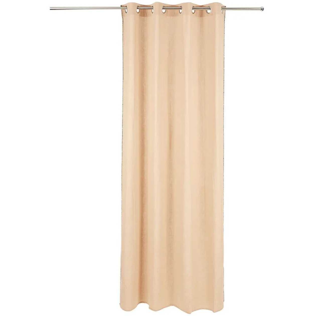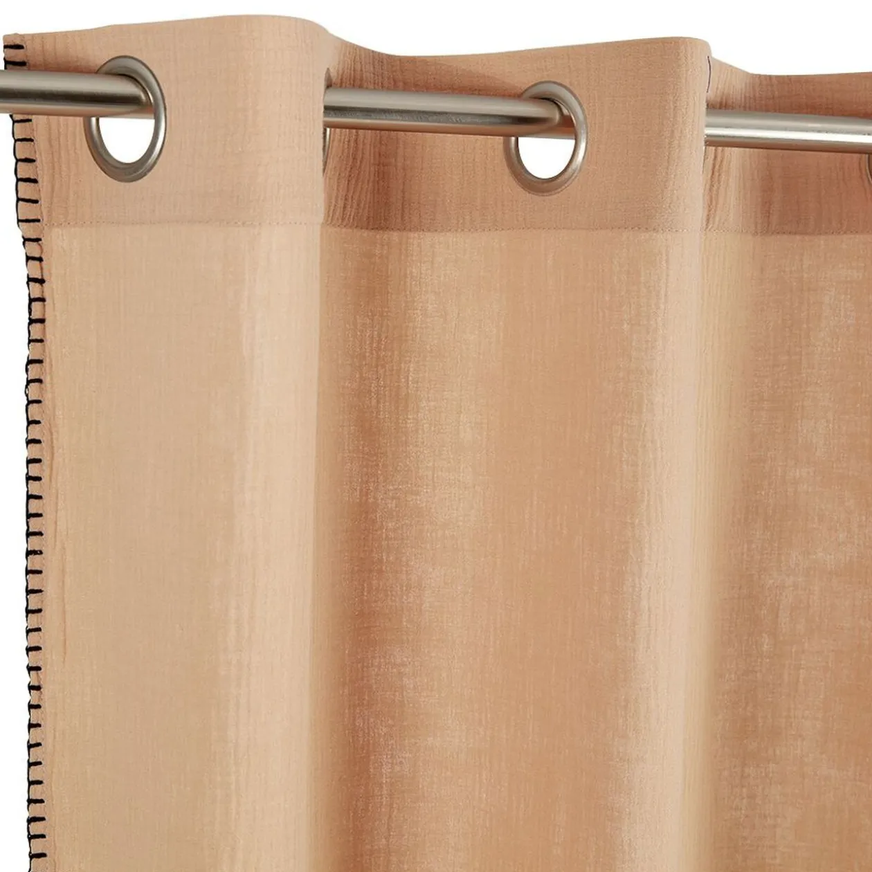 Ce rideau en gaze de coton de couleur rose saumon et à bordures noires est idéal pour une pièce de vie cocooning et tendance !