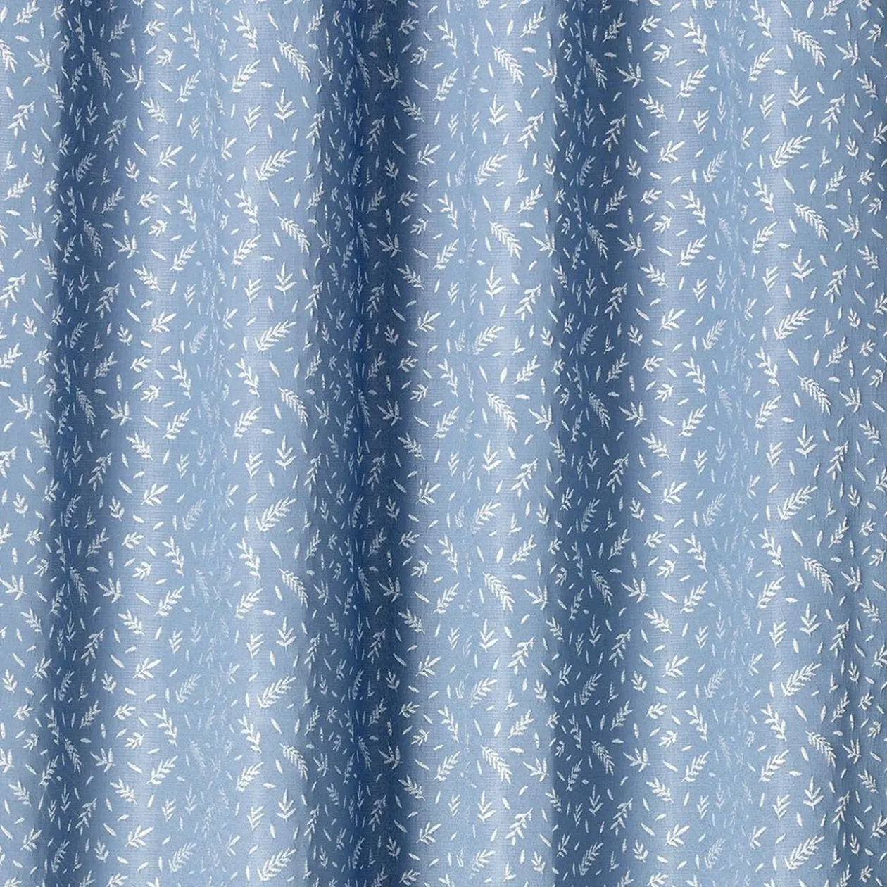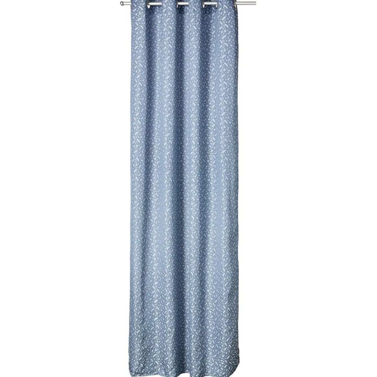 Rideau Jacquard bleu en polyester avec des motifs de feuilles blanches pour habiller vos fenêtres avec une touche fleurie.