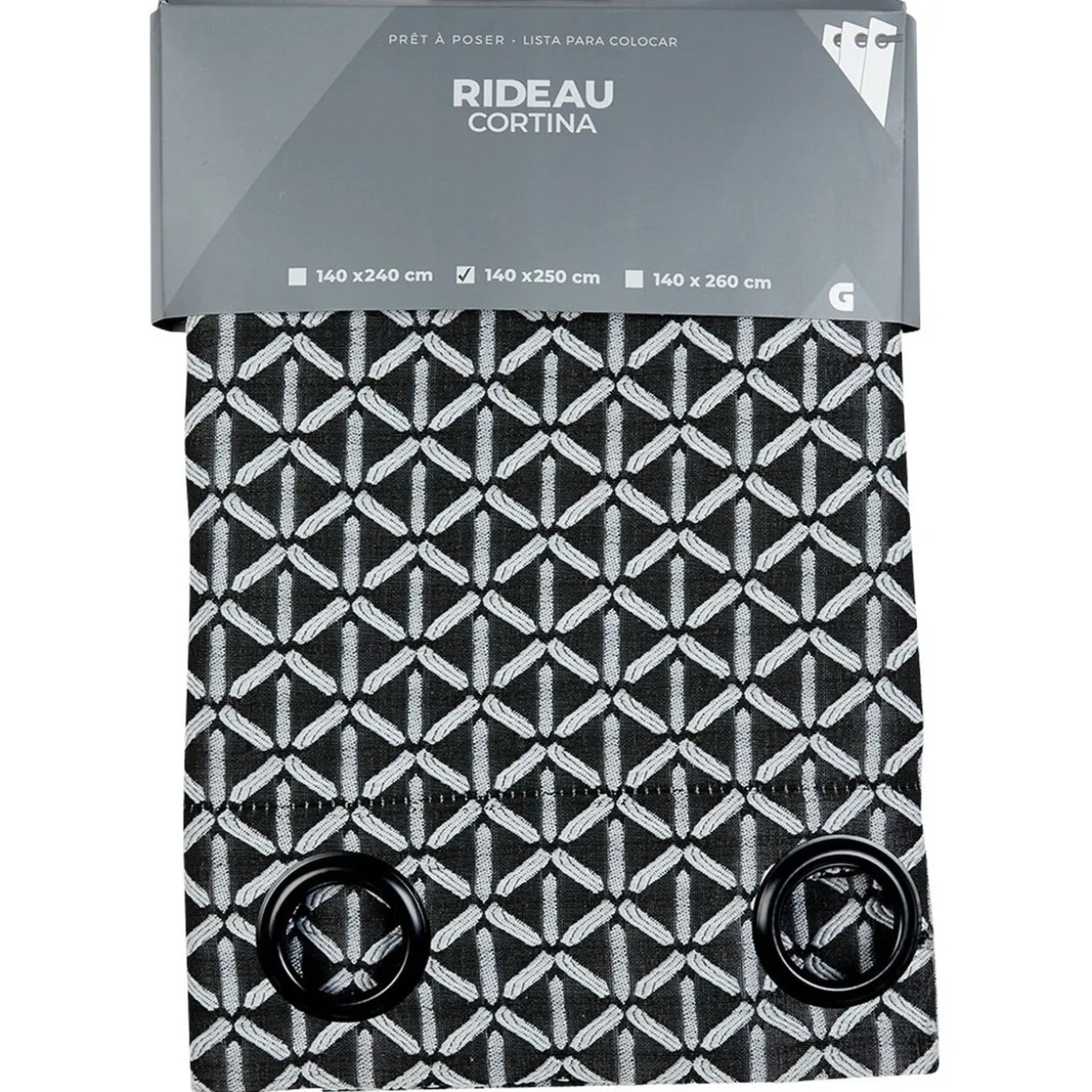 Rideau jacquard L140x250 noir et blanc