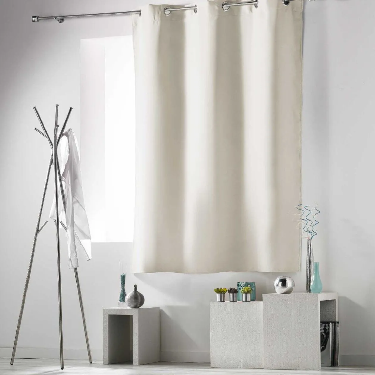 Rideau à oeillets occultant L.140 x h.180 cm, uni, de couleur blanc crème.