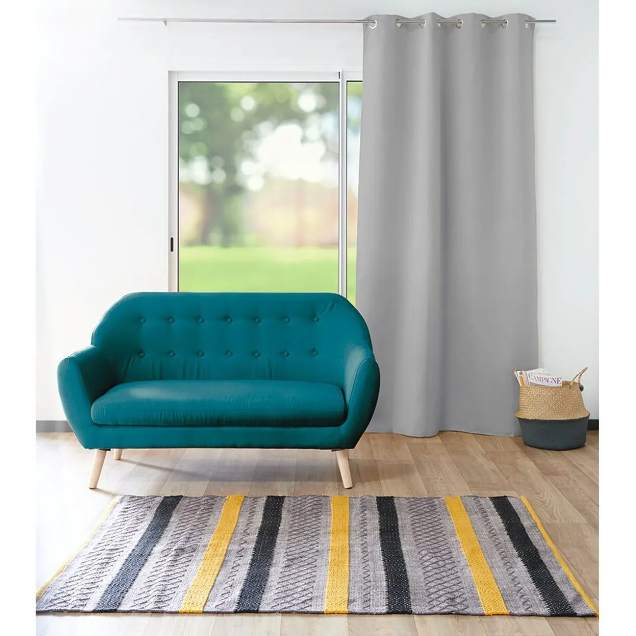 Rideau occultant uni gris pour porte-fenêtre. Opaque : parfait pour occulter la lumière sans fermer les volets!