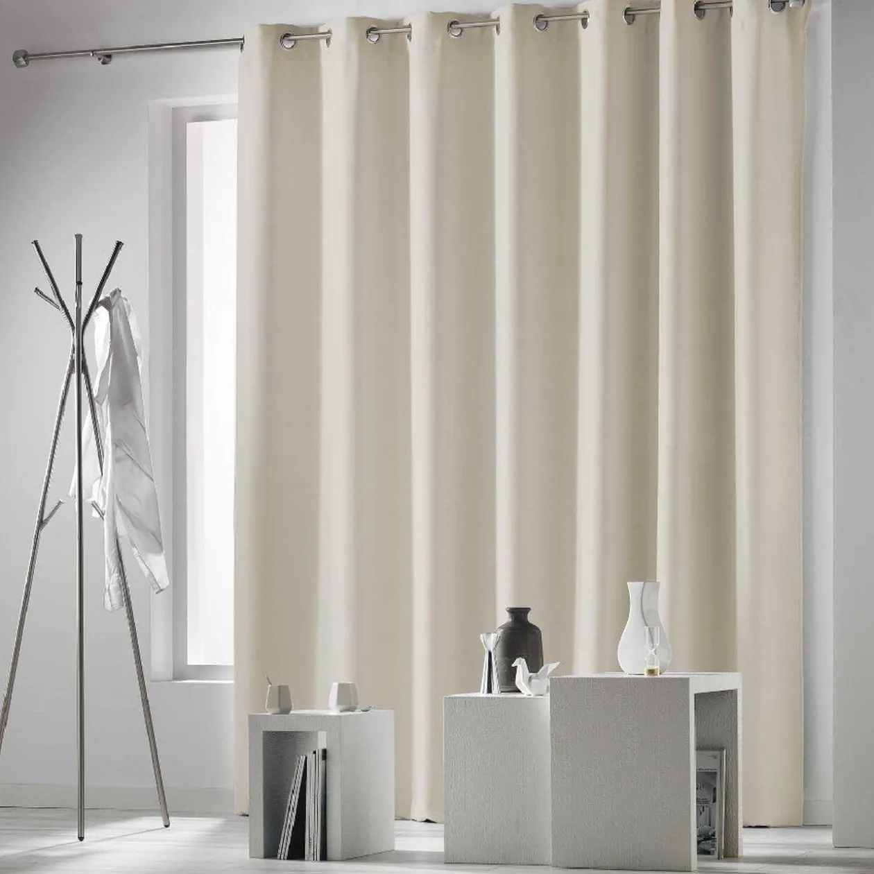 Rideau à oeillets occultant L.260 x h.280 cm, uni de couleur blanc crème, pour baies vitrées.