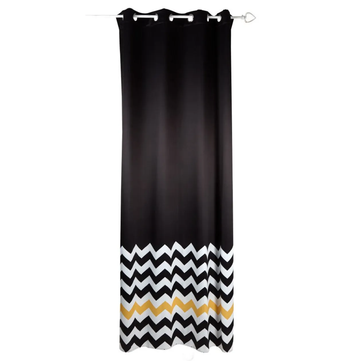 Rideau occultant noir, blanc jaune, polyester. Dim. 140 x 260 cm