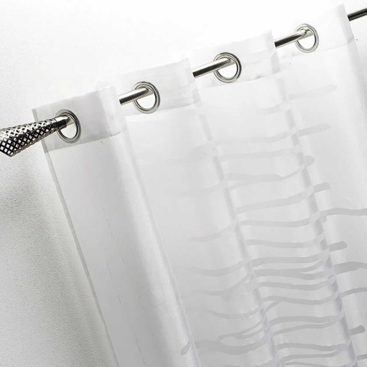 Rideau voilage à oeillets blanc burn out, dim. 140×240 cm, polyester.