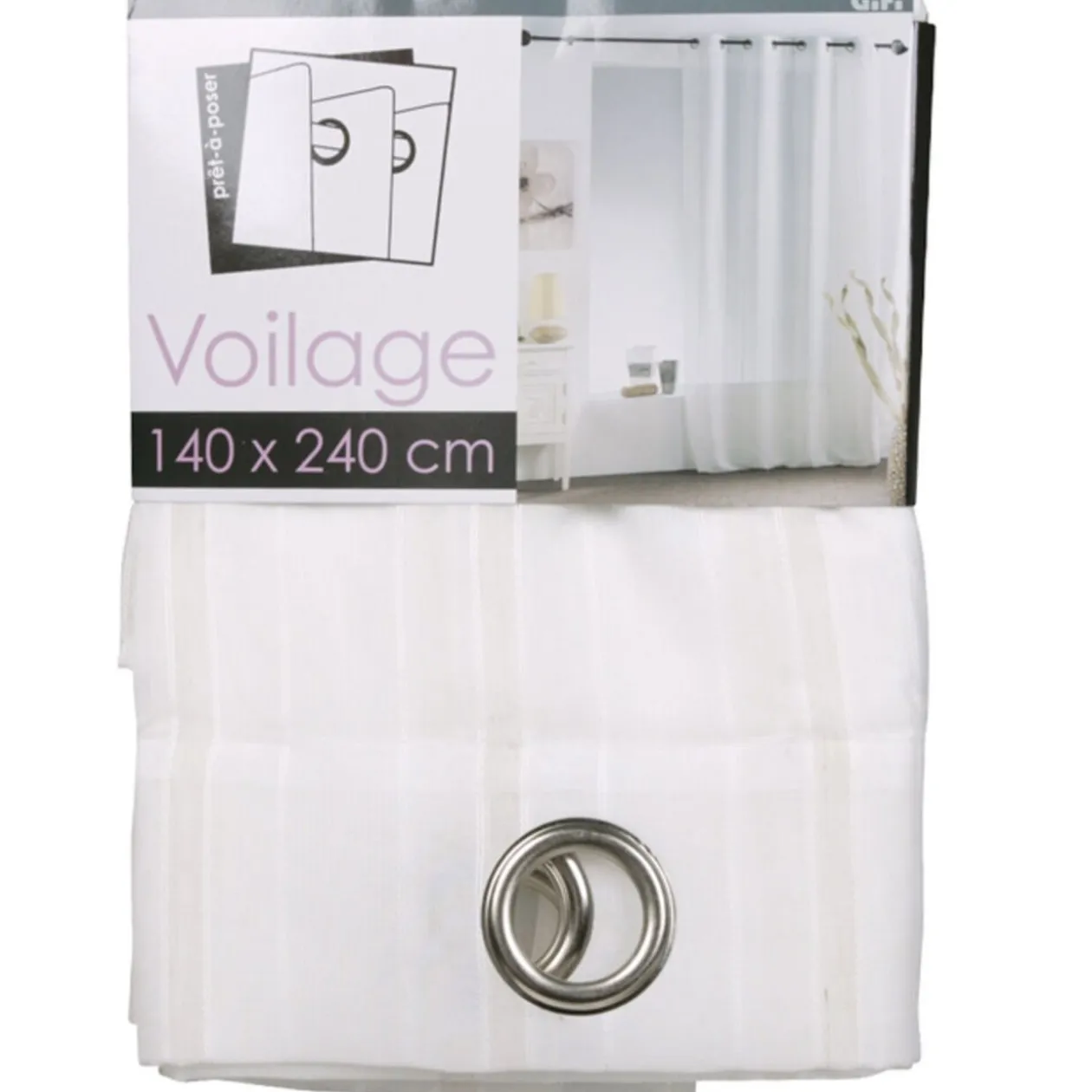 Voilage à oeillets blanc rayé taupe, dim. 140×240 cm, polyester.