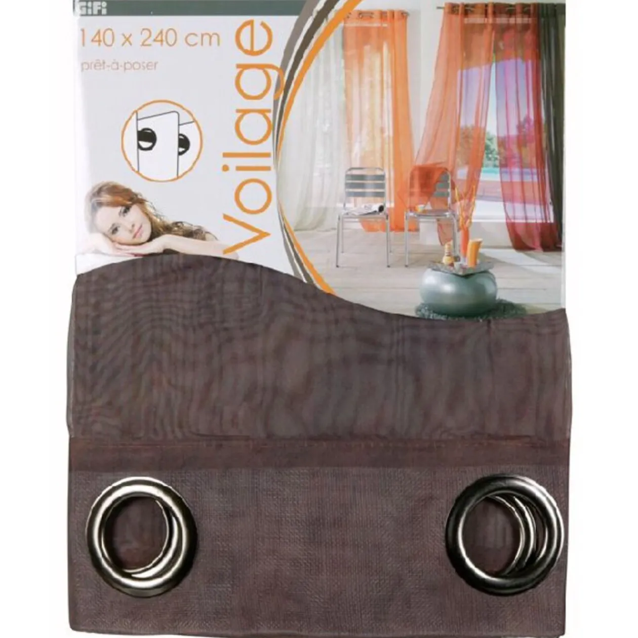 Rideau voile à oeillets, 100% polyester, dim.140 x 240 cm, couleur chocolat.