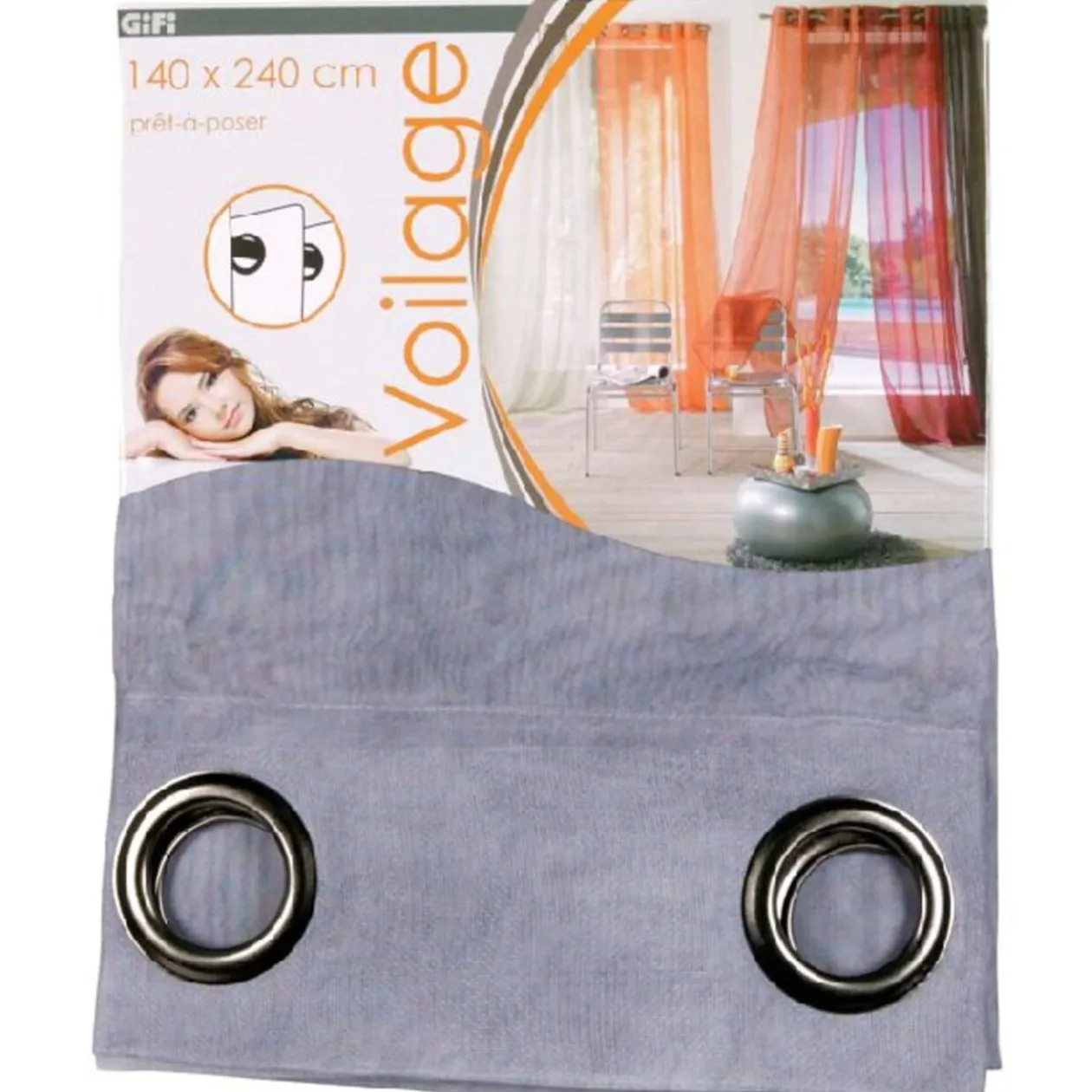 Rideau voile à oeillets, 100% polyester, dim.140 x 240 cm.