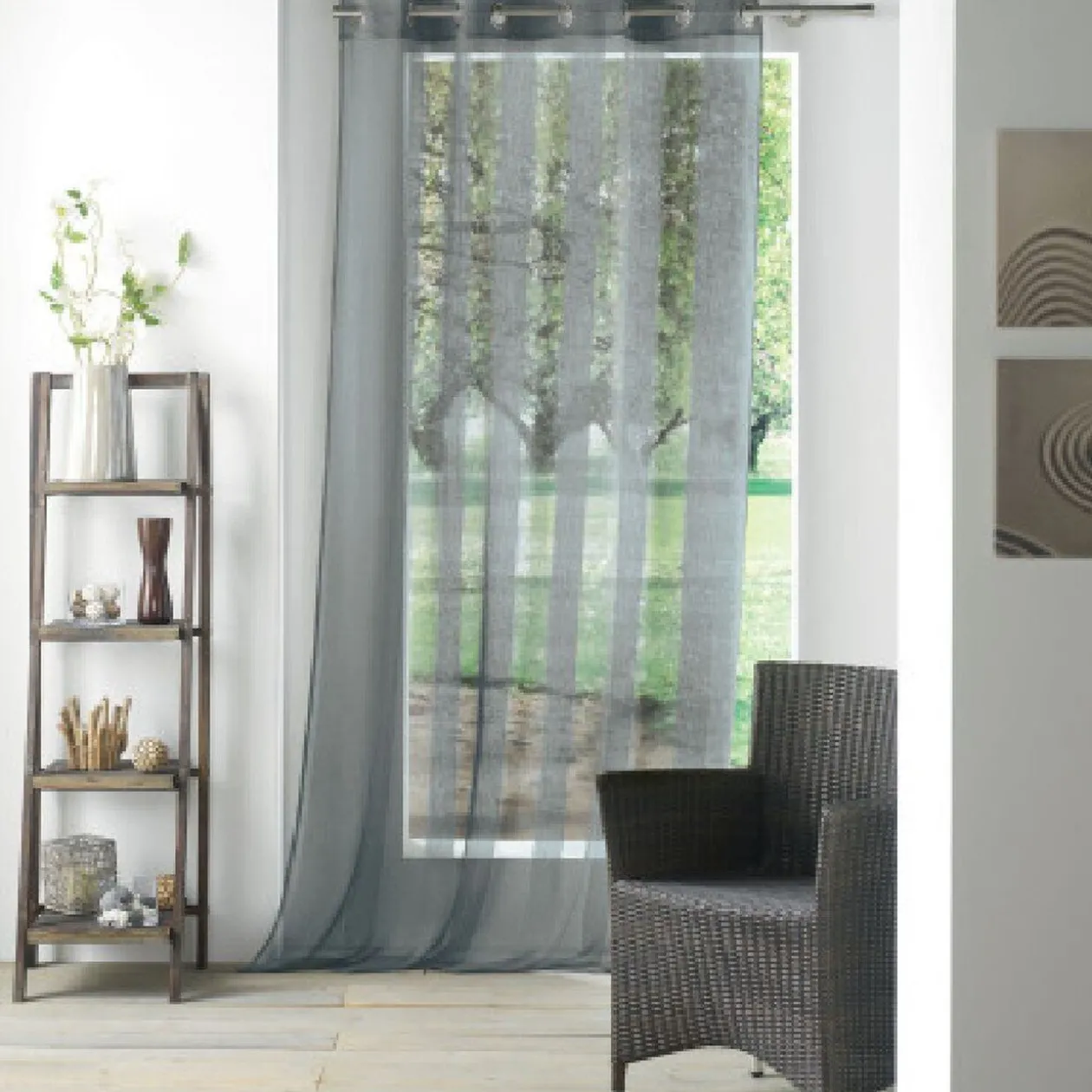 Voilage à oeillets gris avec rayures, dim. 140×240 cm, polyester.
