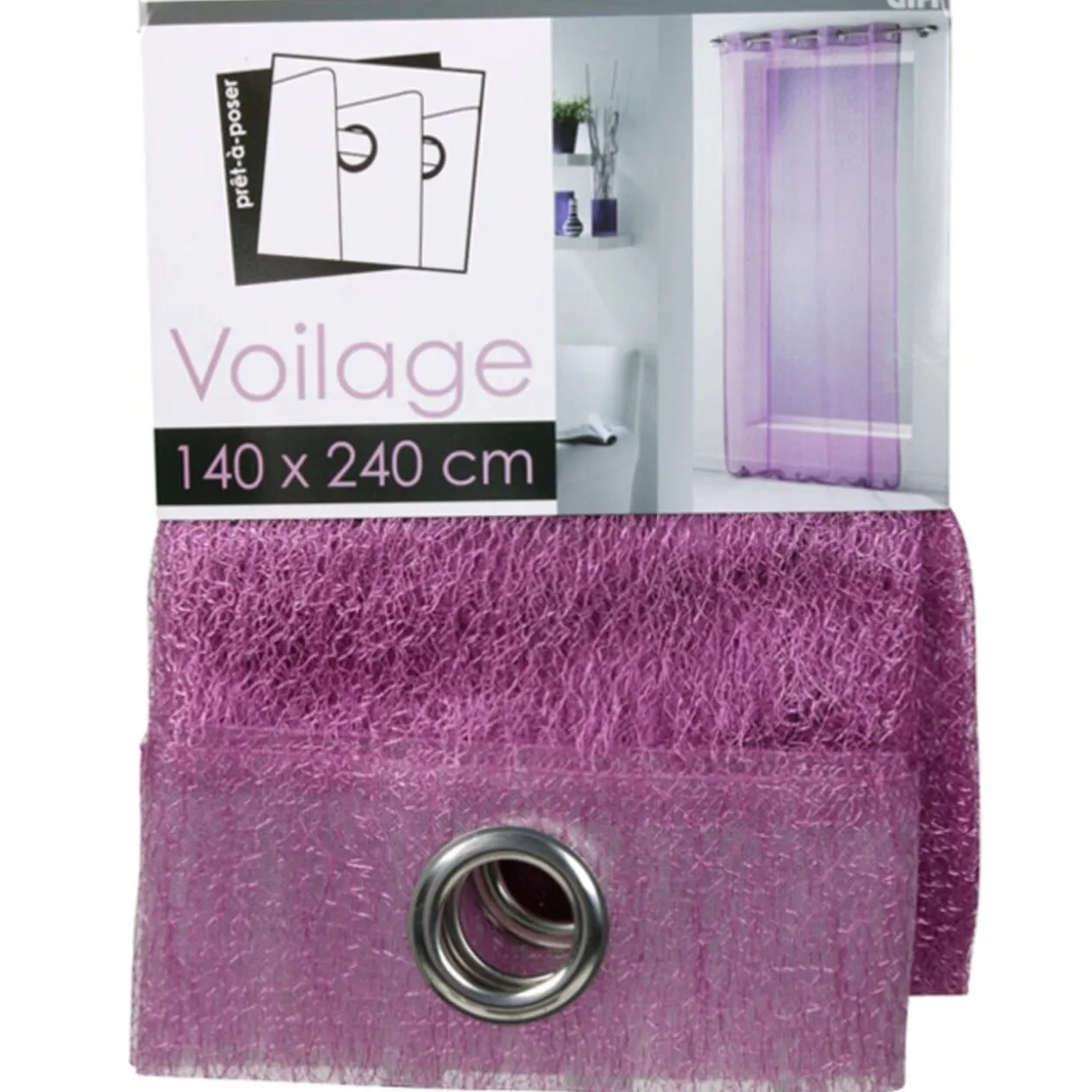 Voilage à oeillets prune, fine résille, dim. 140×240 cm, polyester.