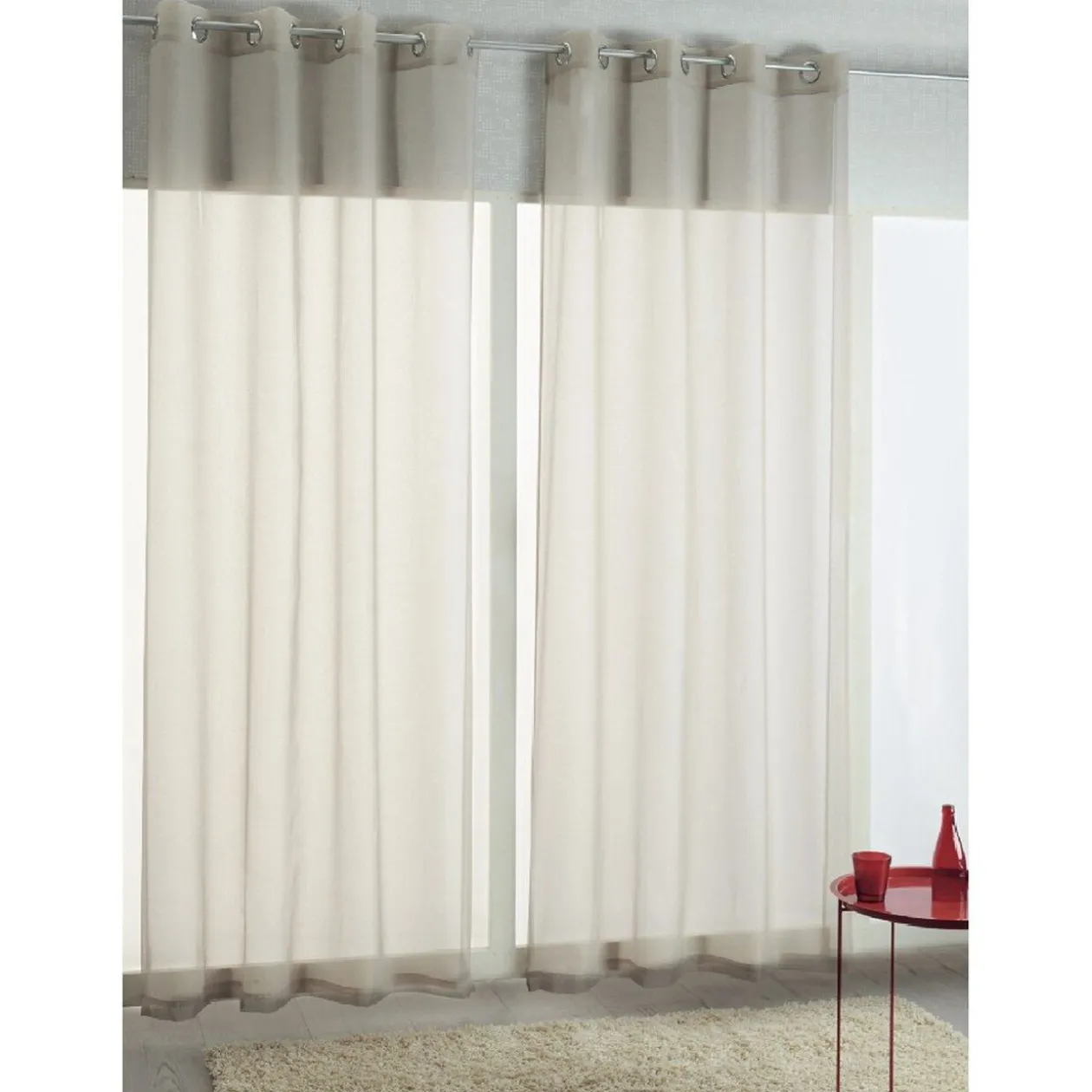 Rideau voilage à oeillets taupe uni, dim. 140×240 cm, polyester.