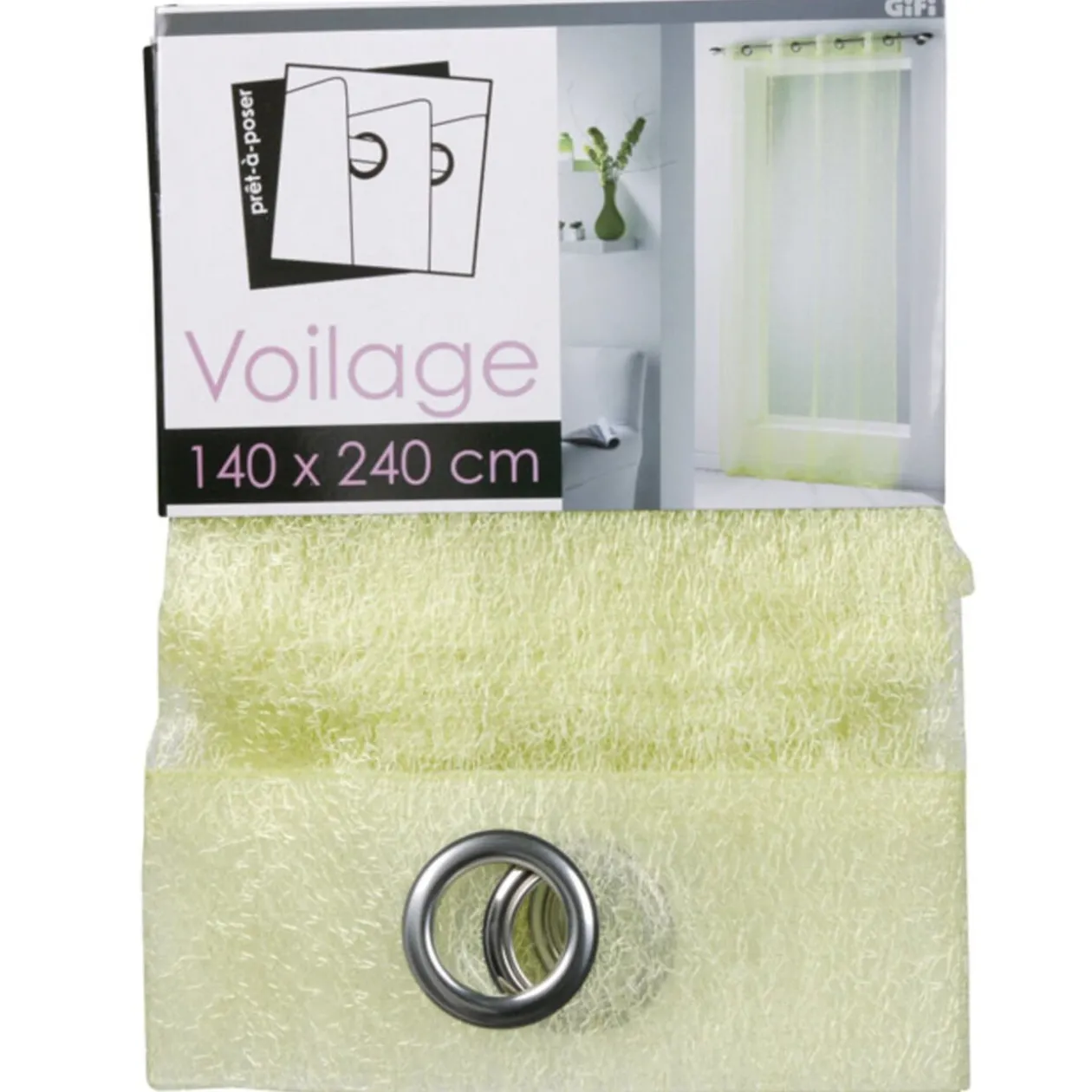 Voilage à oeillets vert, fine résille, dim. 140×240 cm, polyester.