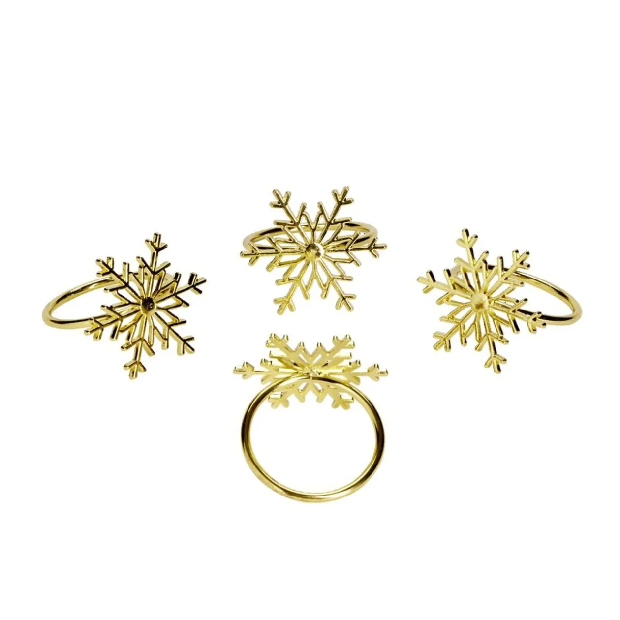 Apportez une touche d’élégance à votre table avec ce set de 4 ronds de serviette en métal doré ornés d’une charmante forme de flocon de neige.