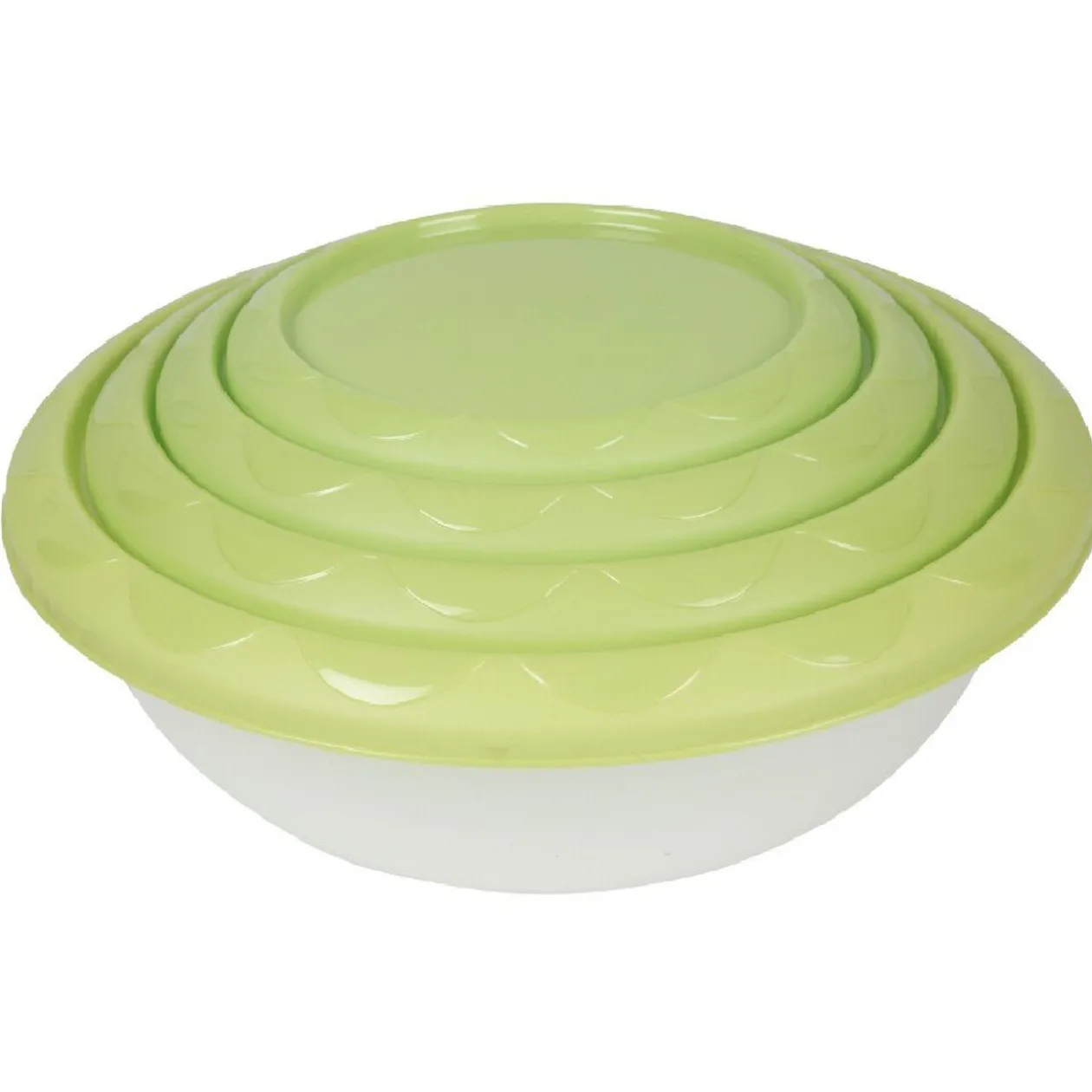 Gagnez de la place avec ces 4 saladiers empilables avec couvercle vert. 4 dimensions pour le guacamole, la sauce vinaigrette, les chips et la salade.
