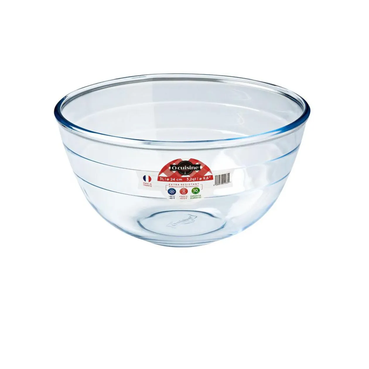 Saladier en verre transparent, compatible lave-vaisselle et four à Micro-ondes.