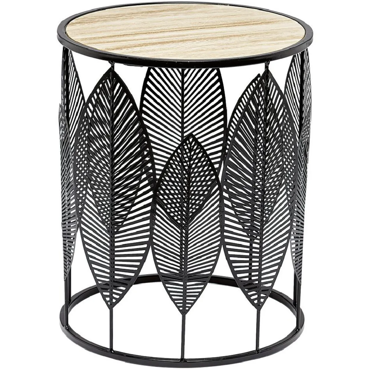 Superbe sellette avec structure en métal design feuilles noires avec plateau en pin naturel.