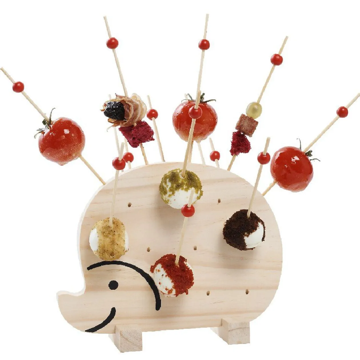 Set apéro en forme d’hérisson, dim. 22×17,5×8 cm, bambou. 27 pics inclus, L. 16 cm.