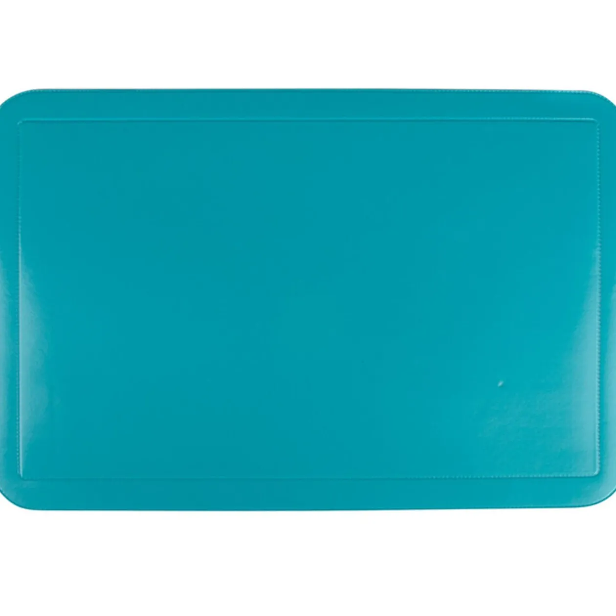 Set de table bleu turquoise imitation toile cirée, dim. 43,5×28,5 m, plastique.