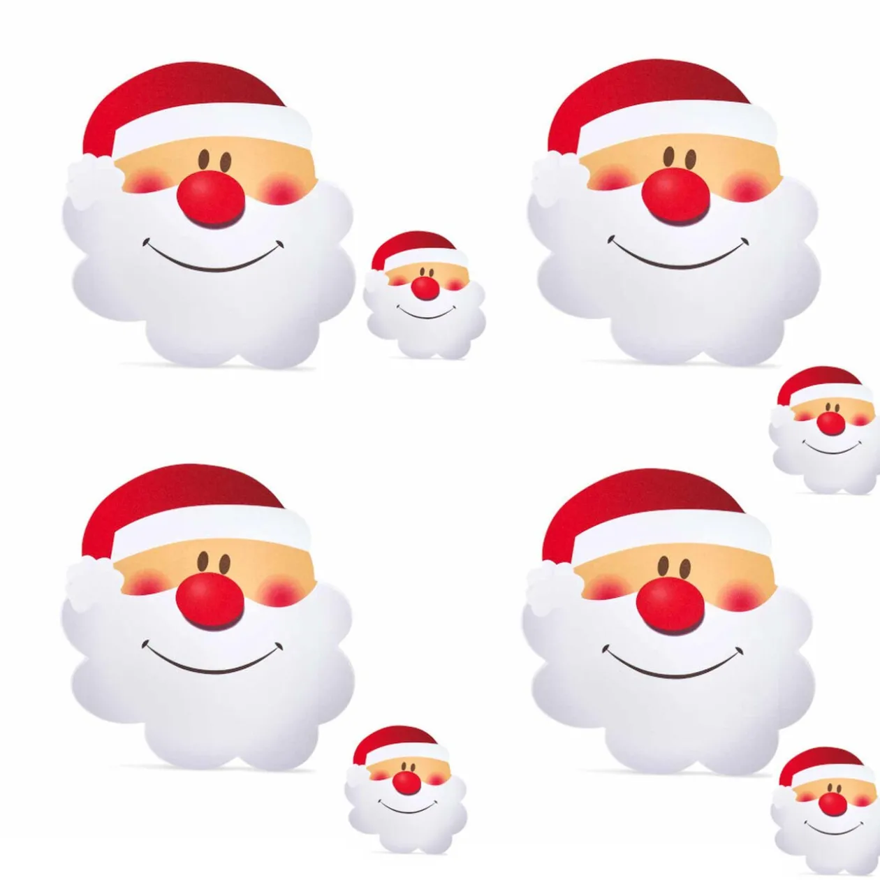 Égayez votre table à l’occasion de Noël avec ce kit de 4 sets de table et 4 dessous de verres en forme de tête de Père Noël rouge et blanc.