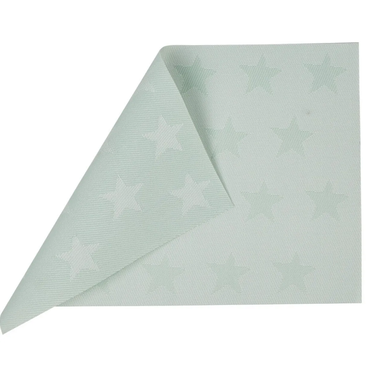 Set de table rectangulaire vert d’eau motifs étoiles, dim. 45×30 cm, polypropylène.