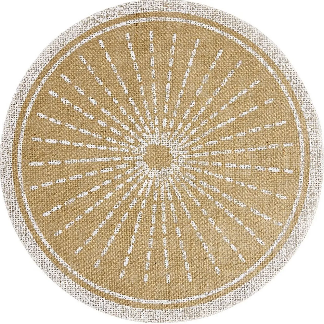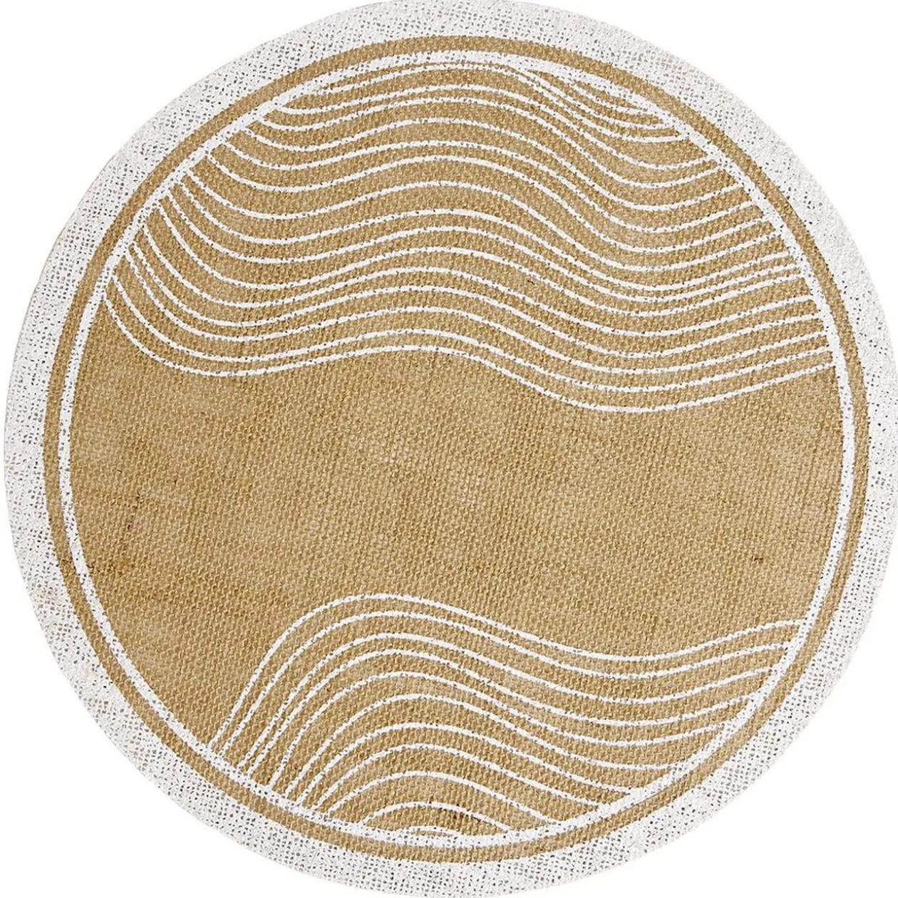 Apportez une touche élégante et rustique à votre cuisine ou salle à manger avec ce set de table rond 100% en jute de couleur naturelle avec motifs blancs.