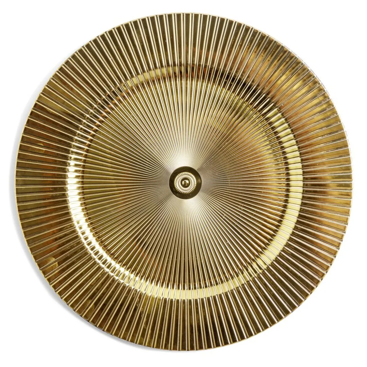 Élevez vos présentations avec ce sous-assiette striée dorée d’un diamètre de 33cm.
