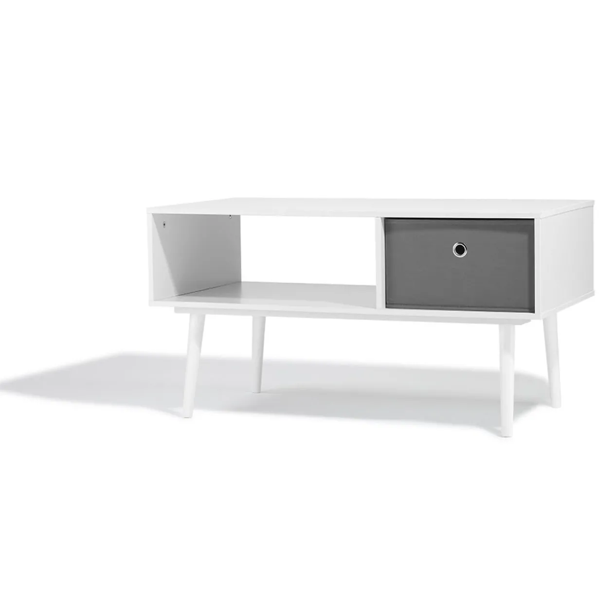 Associez le fonctionnel et l’esthétique avec notre table basse blanche de la gamme Bilbao ! Une fois placée dans votre salon, votre entrée ou dans un coin de votre salle à manger, elle habillera la pièce et répondra astucieusement à vos attentes en matière de rangement. En effet, elle possède deux espaces de rangement distincts : un tiroir gris qui vous permet de garder à l’abri vos effets personnels et une niche spacieuse dans laquelle il est possible de glisser des magazines, par exemple. Avec la couleur discrète du revêtement papier décor de la structure, cette table basse se mariera sans soucis à votre intérieur. Vous pouvez également opter pour des meubles coordonnés en choisissant les étagères ou le meuble TV de la même gamme Bilbao que ce produit. Ceux-ci sont disponibles dans notre catalogue.