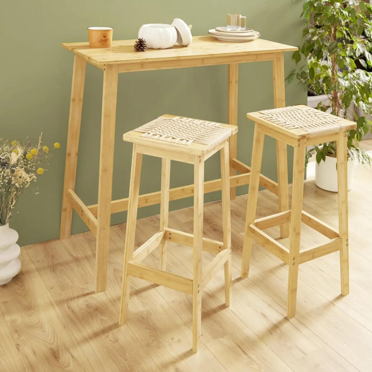 Cet ensemble Baïa composé d’une table de bar et de 2 tabourets assortis est idéal pour prendre l’apéritif debout, ou un en-cas rapide.