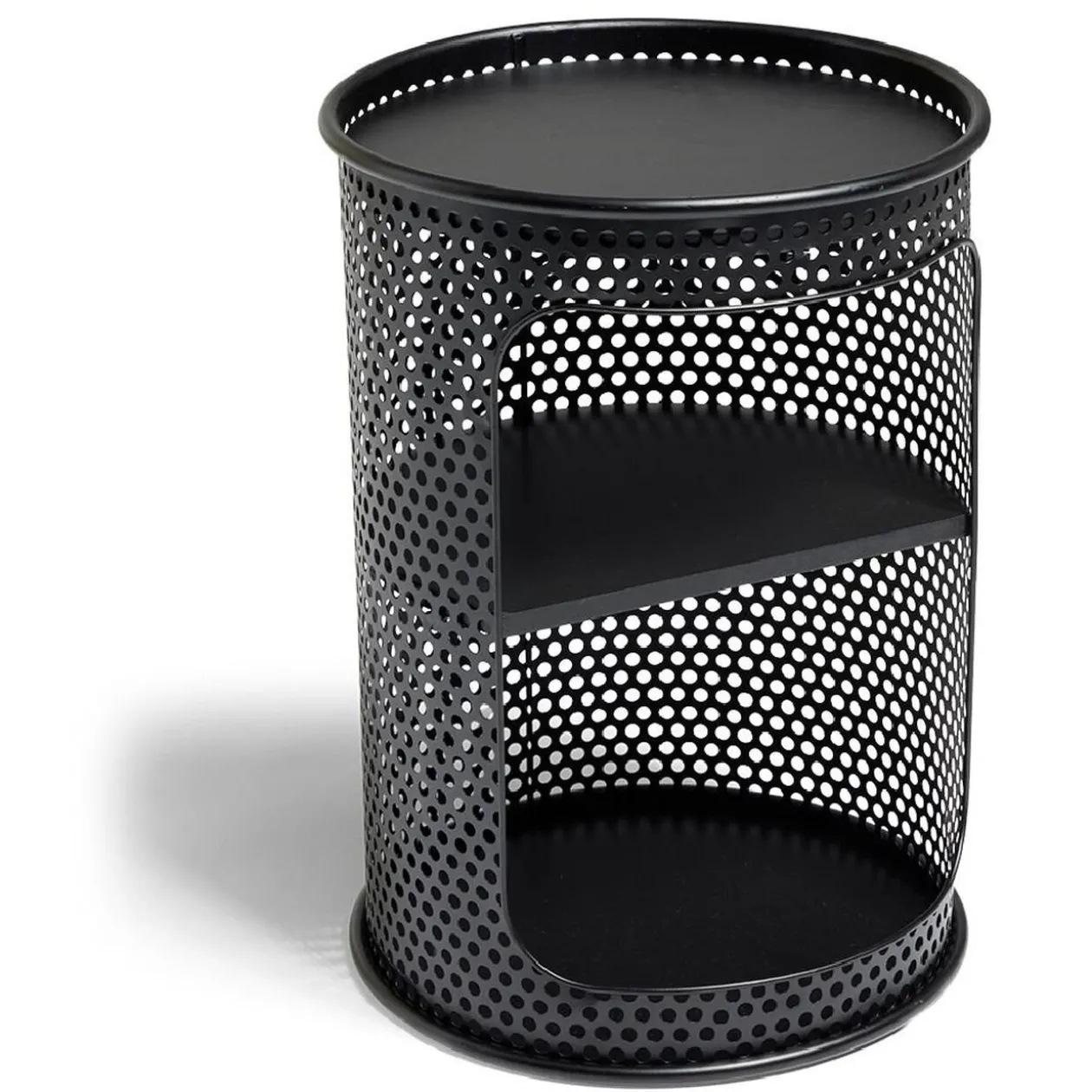 Son cadre en acier grillagé noir, moderne et épuré, soutient trois étagères en bois pratiques pour organiser vos essentiels.