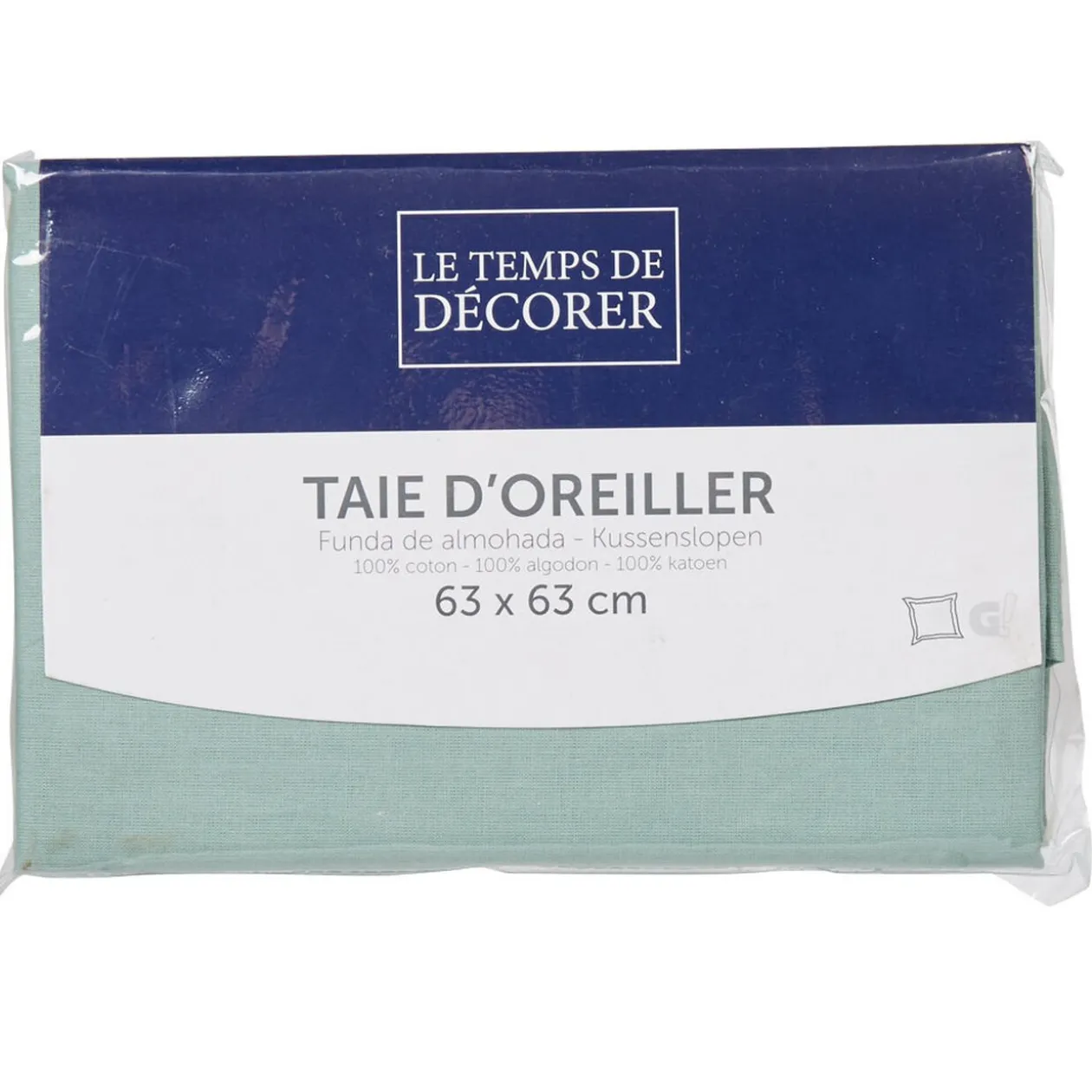 Taie d’oreiller carrée unie de couleur vert d’eau.