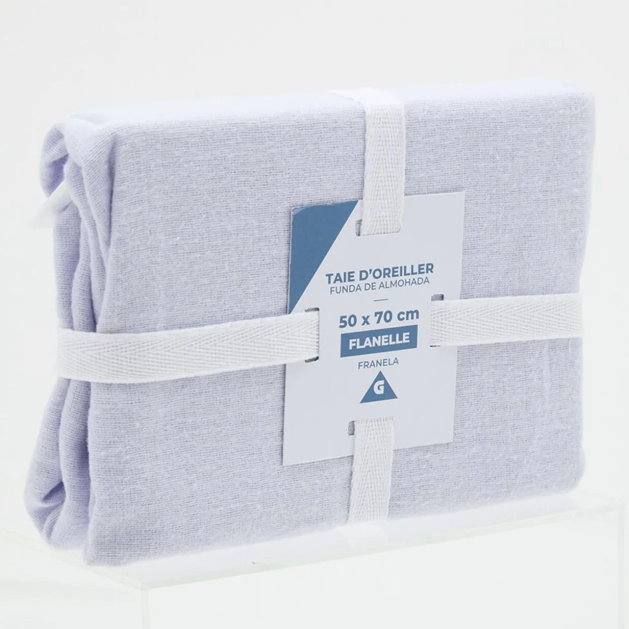 Taie d’oreiller en flanelle de couleur taupe, lilas, bleue ou grise.