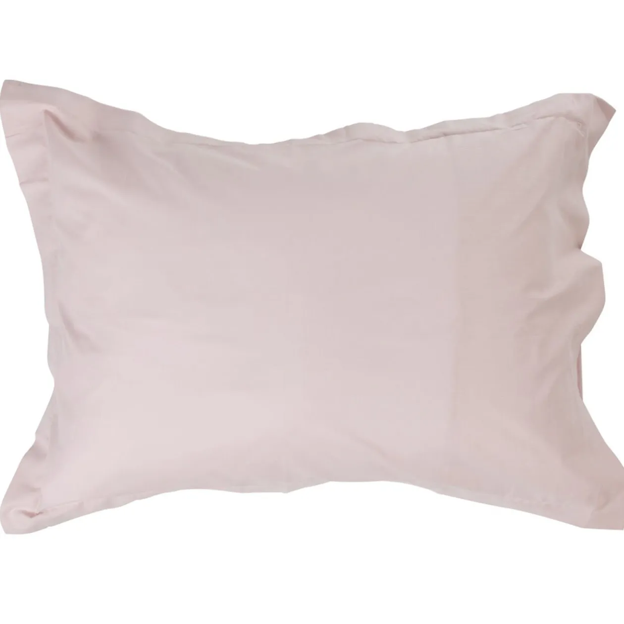 Taie d’oreiller rectangulaire à volant, unie de couleur rose clair.